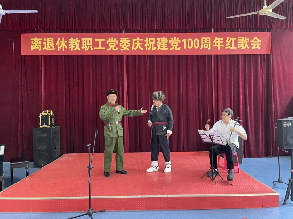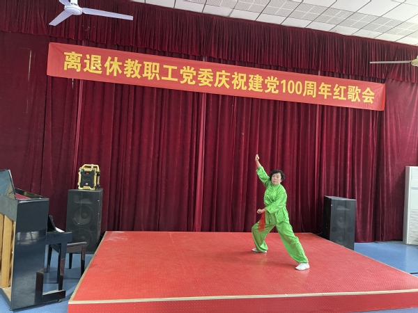 为喜迎建党100周年,推进党史学习教育,进一步丰富离退休教职工的精神文化生活,引导广大老同志感党恩、听党话、跟党走,离退休教职工党委于5月28日在教工之家活动室举行庆祝建党100周年红歌会,离退休工作处分管校领导出席活动。 红歌会在一首男女声合唱《浏阳河》中拉开序幕,老同志们通过独唱、二重唱、合唱、京剧演唱、乐器演奏等艺术形式带来了《党啊!亲爱的妈妈》、《最美的歌唱给妈妈》、《最美》、《深山问苦》、《映山红》、《我们是工农子弟兵》、《双脚踏上幸福路》等红歌表演,老同志们还带来了舞蹈《次真拉姆》、《我的九寨》,旗袍秀《红梅赞》和养生太极杖、传统武术等表演节目。广大离退休老同志以情带声、声情并茂的激情演唱,以及以优美的舞姿和健康的养生运动等,充分展现了老同志们健康向上的精神风貌,表达了老同志们对党的深厚情感和对美好生活的赞美。最后,红歌会在老同志们集体演唱《没有共产党就没有新中国》中达到了高潮。整台演出气氛热烈,精彩纷呈,全场不时响起热烈的掌声。 (撰稿:离退休工作处 陈睿琪 审核:离退休工作处 李如林)