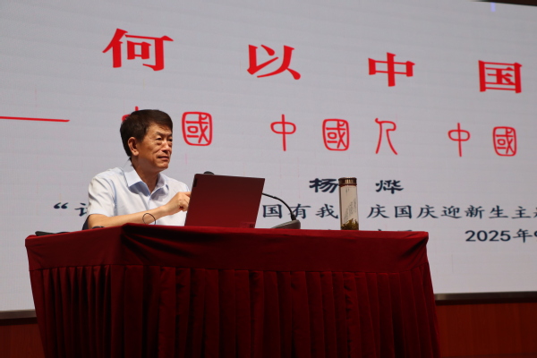 杨烨以“何以中国—中国 中国人 中国文化”为题,为2025级新生呈现了一场别具一格的“开学文化大餐”。他以汉字的起源与演变为线索,阐明中华文明乃是世界上唯一未曾中断且以国家形态延续发展至今的伟大文明,充分彰显了中华民族的智慧结晶与守正创新精神。他阐释了中华文明的连续性、创新性、统一性、包容性与和平性,勉励同学们坚定文化自信,增强身为中国人的自信心与自豪感,厚植爱国情怀,汲取奋进力量。他启发同学们在学习与生活中修养品德,在思想上树立正确的世界观、人生观和价值观,理性甄别世界多元文化,推动中华优秀传统文化更好传承弘扬。